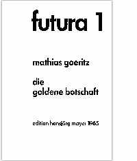 futura is a series of influential, innovative poetry broadsides published by Hansjorg Mayer between 1965 and 1969