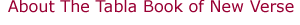 The Tabla Book of New Verse, an annual publication, ran from 1998 to 2004 and was the successor to Tabla poetry magazine (1992-97). These popular anthologies contained new work by some of the most prominent figures in contemporary verse, including Seamus Heaney, Carol Rumens, Paul Muldoon, Charles Tomlinson, Kathleen Raine, John Burnside, Peter Redgrove, Charles Simic and Pauline Stainer. Tabla prided itself equally on the publication of excellent work by less familiar names (some of which was sourced from a tie-in competition). Reviews and essays were carried from 1993 to 1999.
