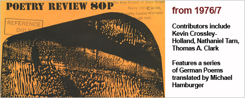 Poetry Review is the Poetry Society's quarterly poetry magazine, founded in 1912. In addition to other issues which appear on this poetry magazines site (the very first issue from 1912, the Festival of Britain issue from 1951 and a more recent issue from 2004), we celebrate the radical history of this 100-year-old magazine by showing off three very different issues published in the 1960s, the 1970s and the 1980s. Digitised as part of the Southbank Centre's London Literature Festival, these include some fascinating poems, essays and reviews, not to mention a special "Poetry and Alcohol" issue from 1984. Click on the links below to read more.