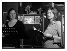 Middle: Philippa Lawrence and Dilys Wood prepare to listen... Bottom: Angela Kirby, ready to read.