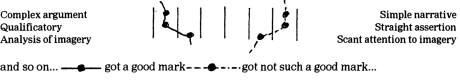 For some years I spent a fortnight each year marking 2000 A Level Lit essays for which there was, as a matter of policy, no standard marking scheme; like haiku now, each essay had to be judged on its own merits. To survive the ordeal, I devised a provisional set of parameters:-